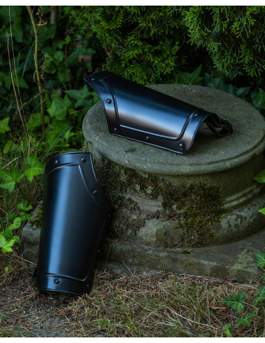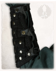 They close practically with two buckles, ensuring a secure fit that is easy to customize according to your preferences. Made of suede, these bracelets offer a combination of durability and softness, providing lightweight and elegant protection for your medieval adventures or historical reenactments.