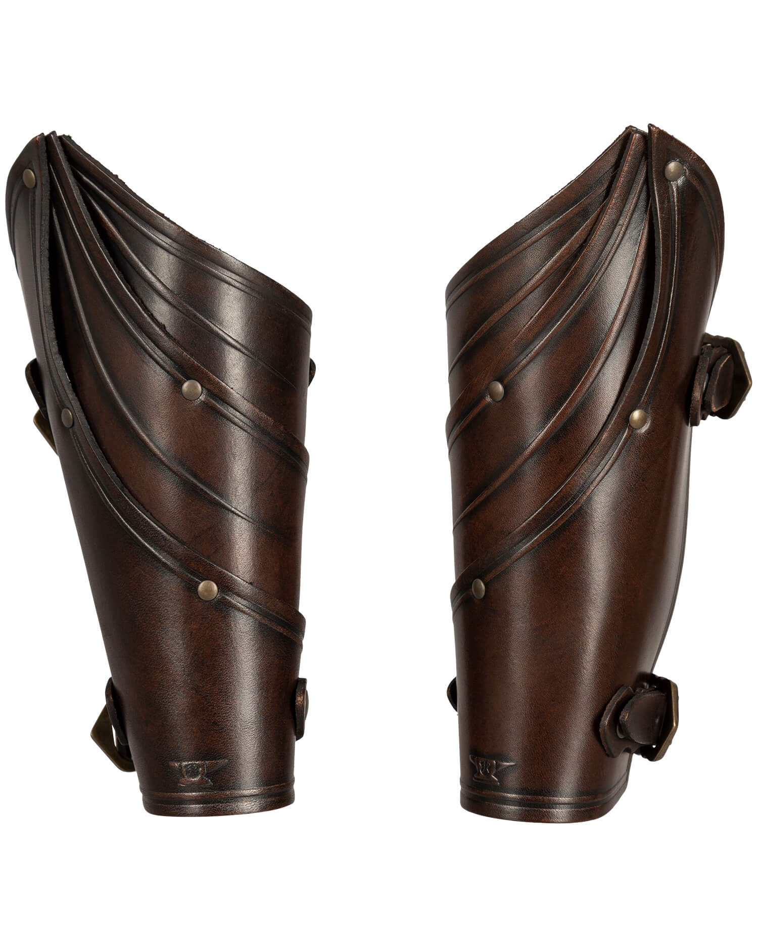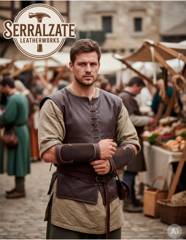 Each bracelet is handcrafted with high-quality Italian leather, ensuring durability and strength. Its exquisitely curved design adds a touch of nobility while highlighting that dark and fierce aesthetic you desire. Furthermore, its ergonomic structure allows for unrestricted movement, making them perfect for any LARP event or for those seeking to dress authentically in period representations.