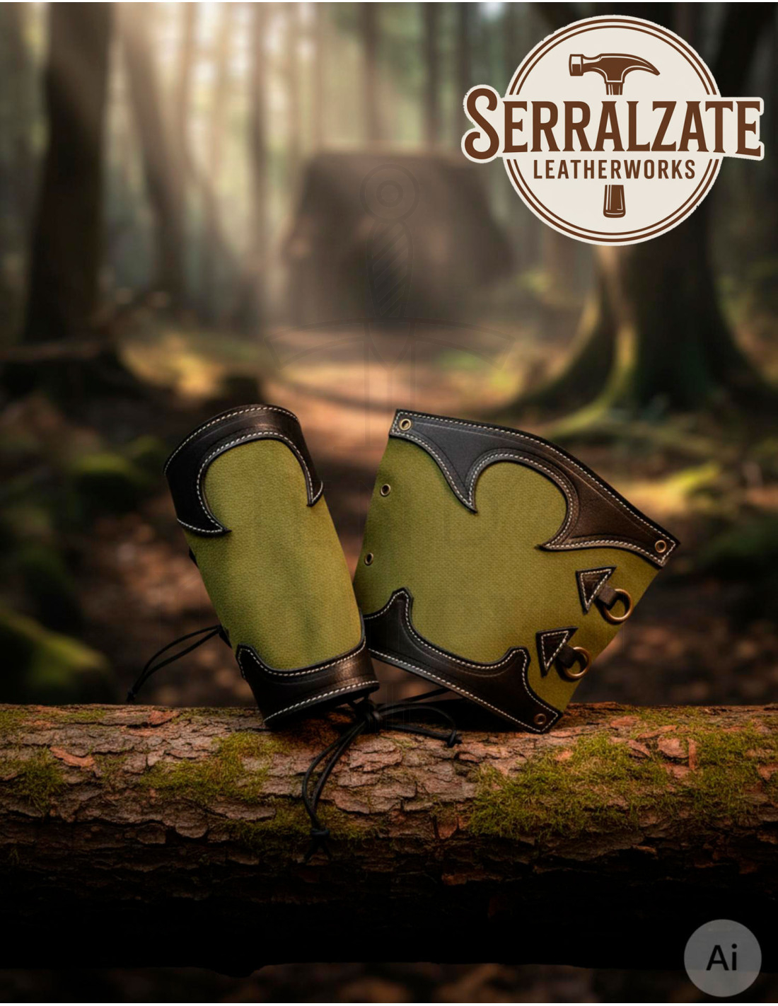 They include a pair, designed for aesthetic and practical balance, so you gain protection without losing touch or skill. The contrast between dark leather and green suede not only harmonizes with wooded landscapes and provides discreet camouflage but also reflects the commitment and resilience of the Ranger, a classic role of protector and tracker living on the edge of the kingdom, watching over paths and forbidden forests.