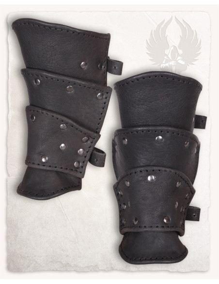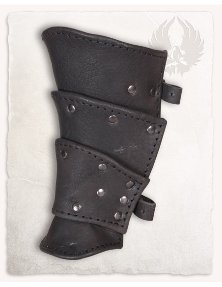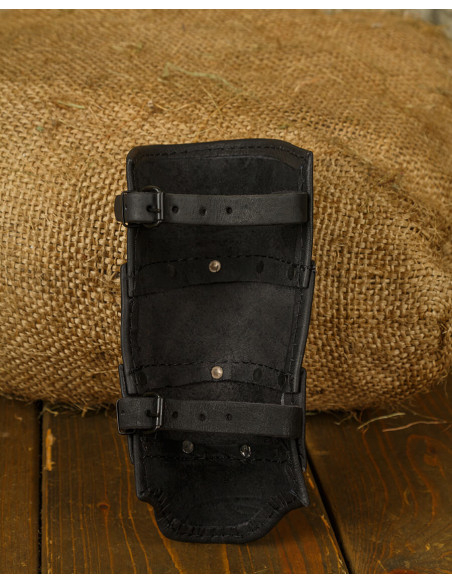 Brazaletes medievales en cuero negro, modelo Albrecht