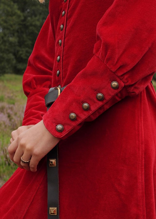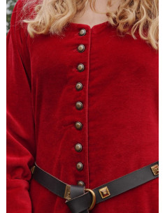 Enjoy the elegance and sophistication of medieval times with our Isabel Medieval Dress. This magnificent dress has been made of red velvet, which gives it a luxurious and noble appearance.