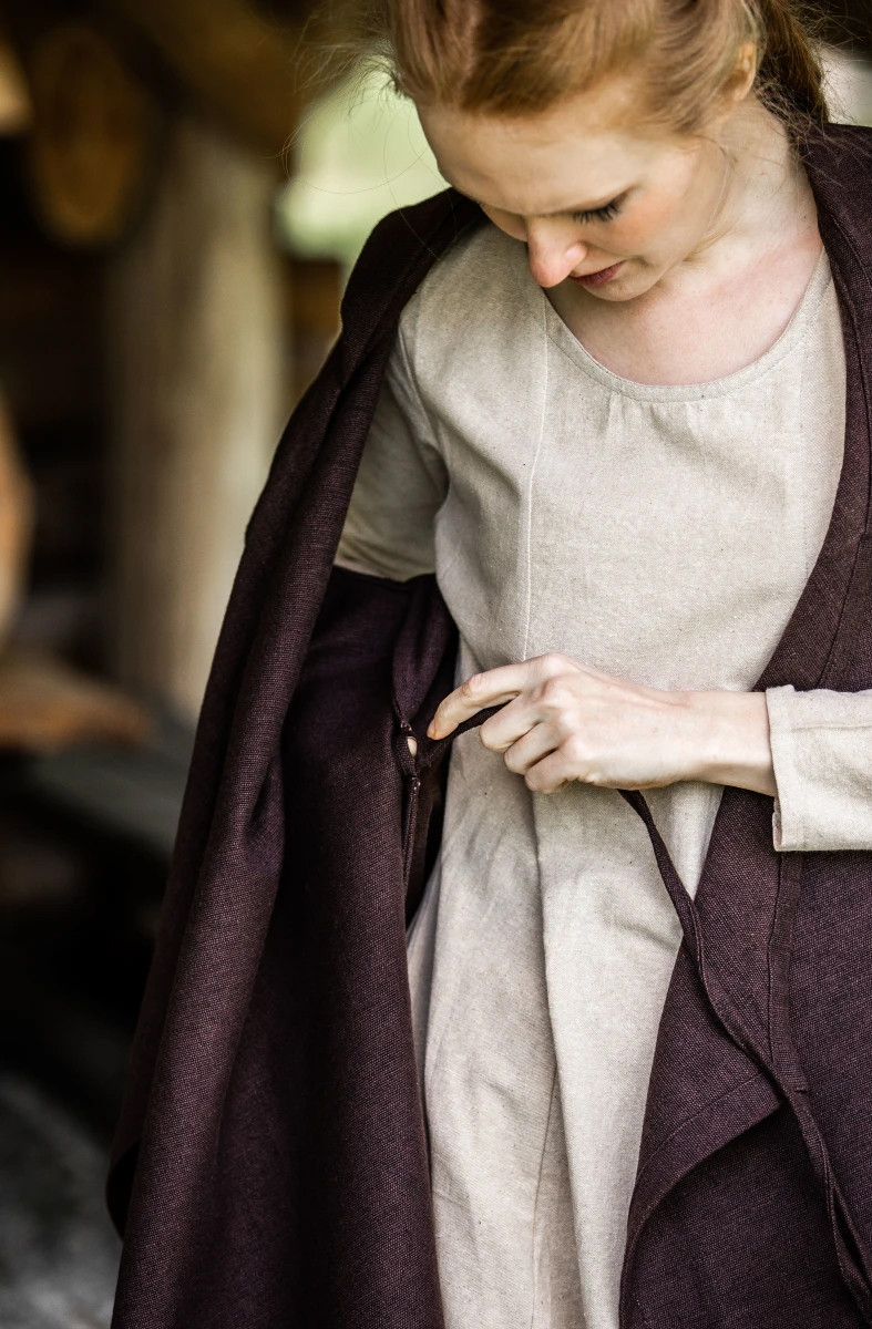 Embark on a medieval adventure with the Gerlin model adjustable dress in brown. This enchanting dress will plunge you into the atmosphere of bygone eras with its simple and authentic design. Made of high-quality rustic cotton, it gives you comfort and resistance with each use.