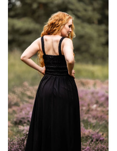 The elegant black Jasmin medieval dress is the perfect choice for those looking for a unique and sophisticated style. With its wide straps with elastic band, this dress fits perfectly to your body, elegantly enhancing your curves.