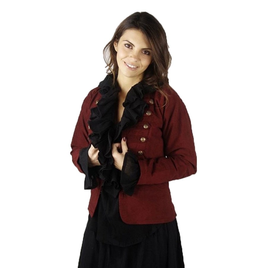 Discover Captain Emilia's pirate jacket in its red version! This women's garment is perfect for adding a touch of style and adventure to your outfit. Made of 100% cotton, it guarantees comfort and durability. Its long-sleeved design will keep you warm on cooler days.