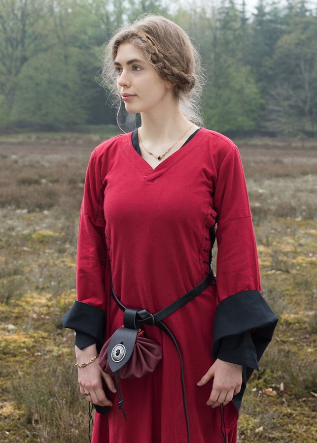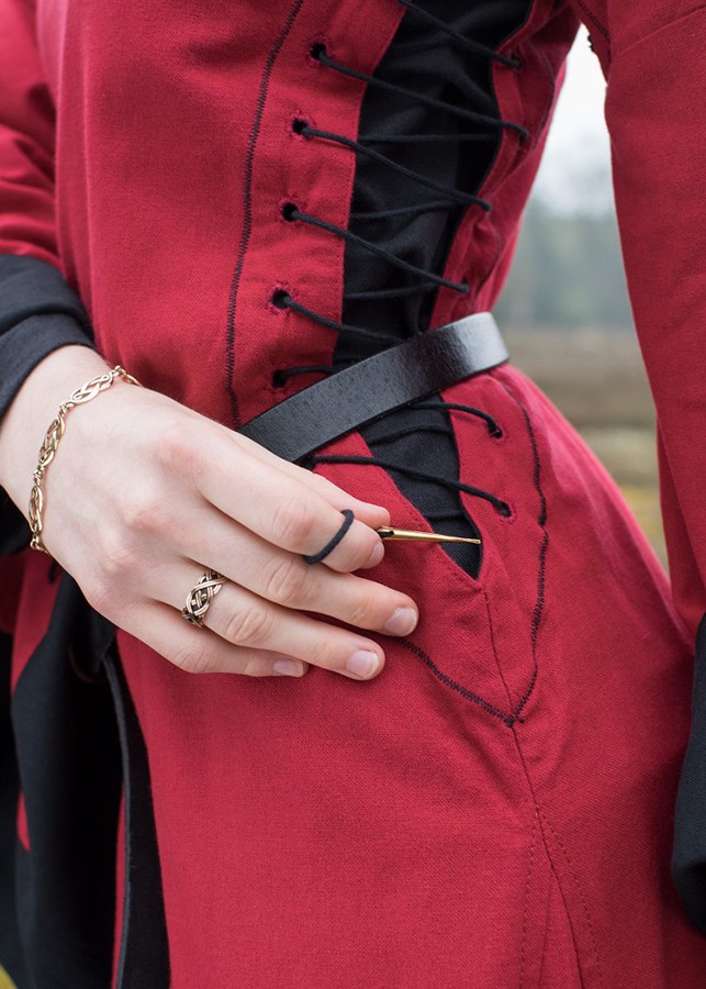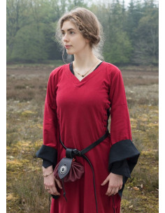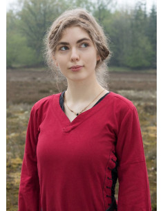 We resolve your doubts about this product: Open medieval dress Bliaut Amal, red-black