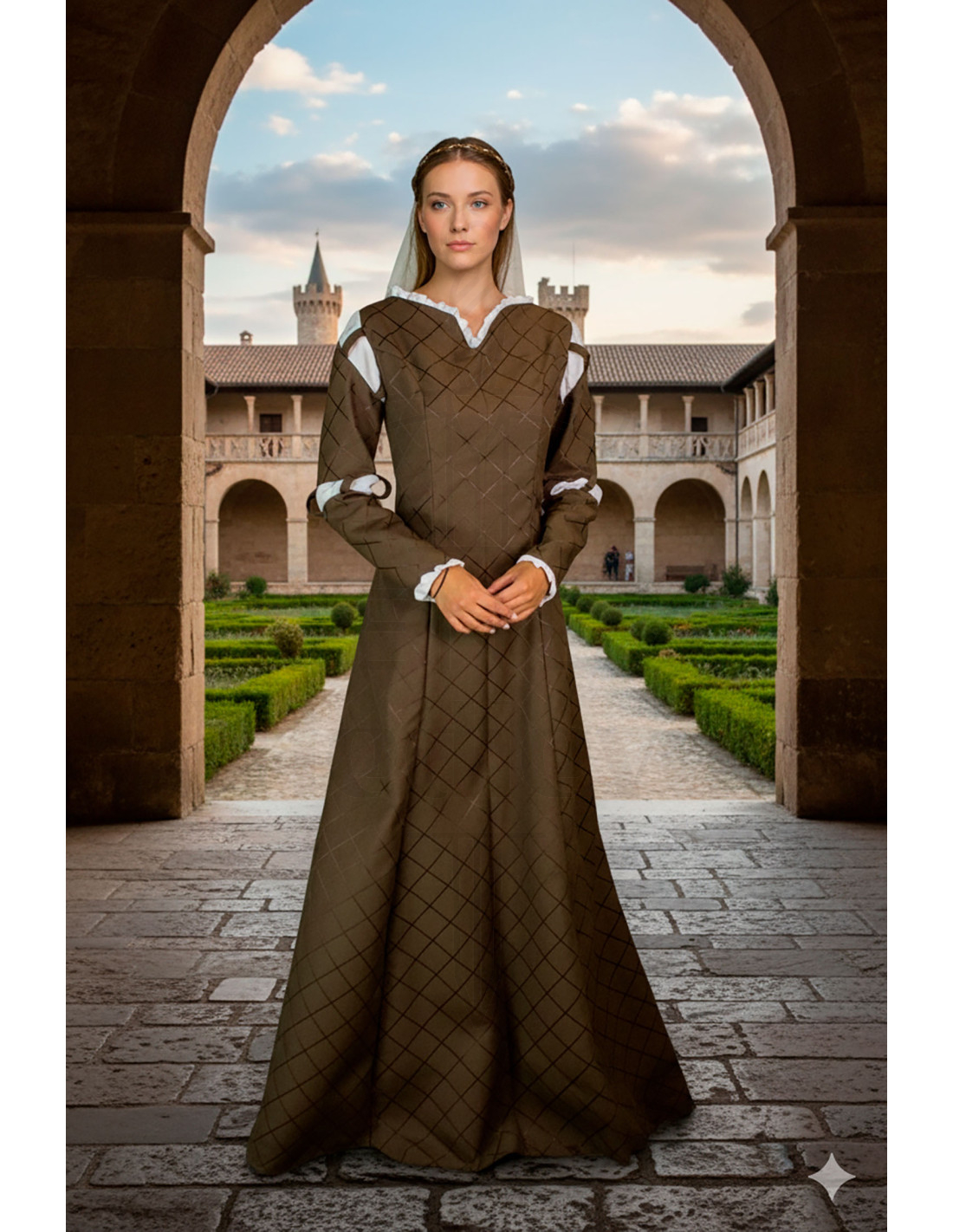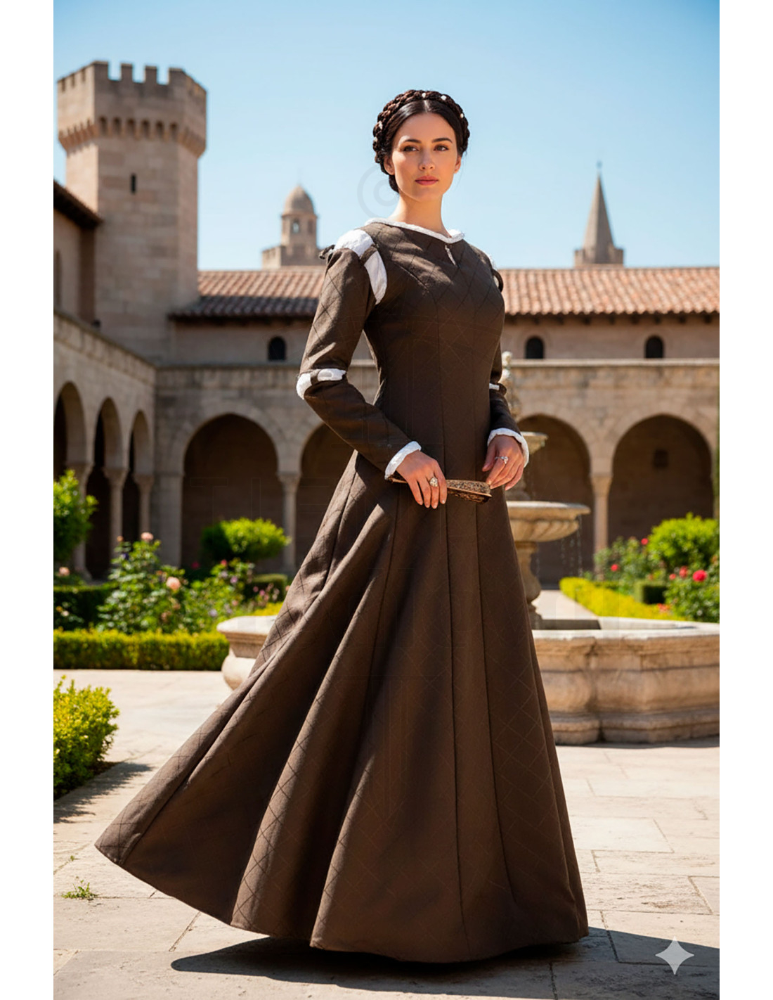 Discover the charm of the medieval era with the Medieval Mérida dress in brown. Designed especially for courtly women, this dress combines style and comfort so you can feel like a true lady of high society from the past.