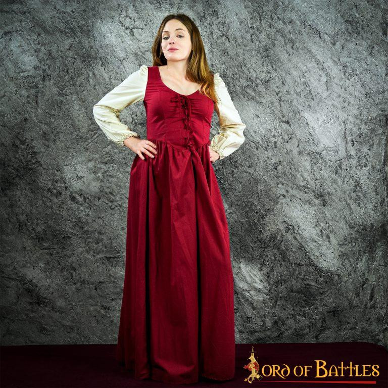 Discover the charm and elegance of the medieval era with the Aramis medieval and renaissance dress in maroon. This dress is specially designed for women who are passionate about history and historical re-enactment. It is made of a soft and resistant 100% cotton, which will give you comfort and freedom of movement without sacrificing your style.
