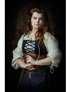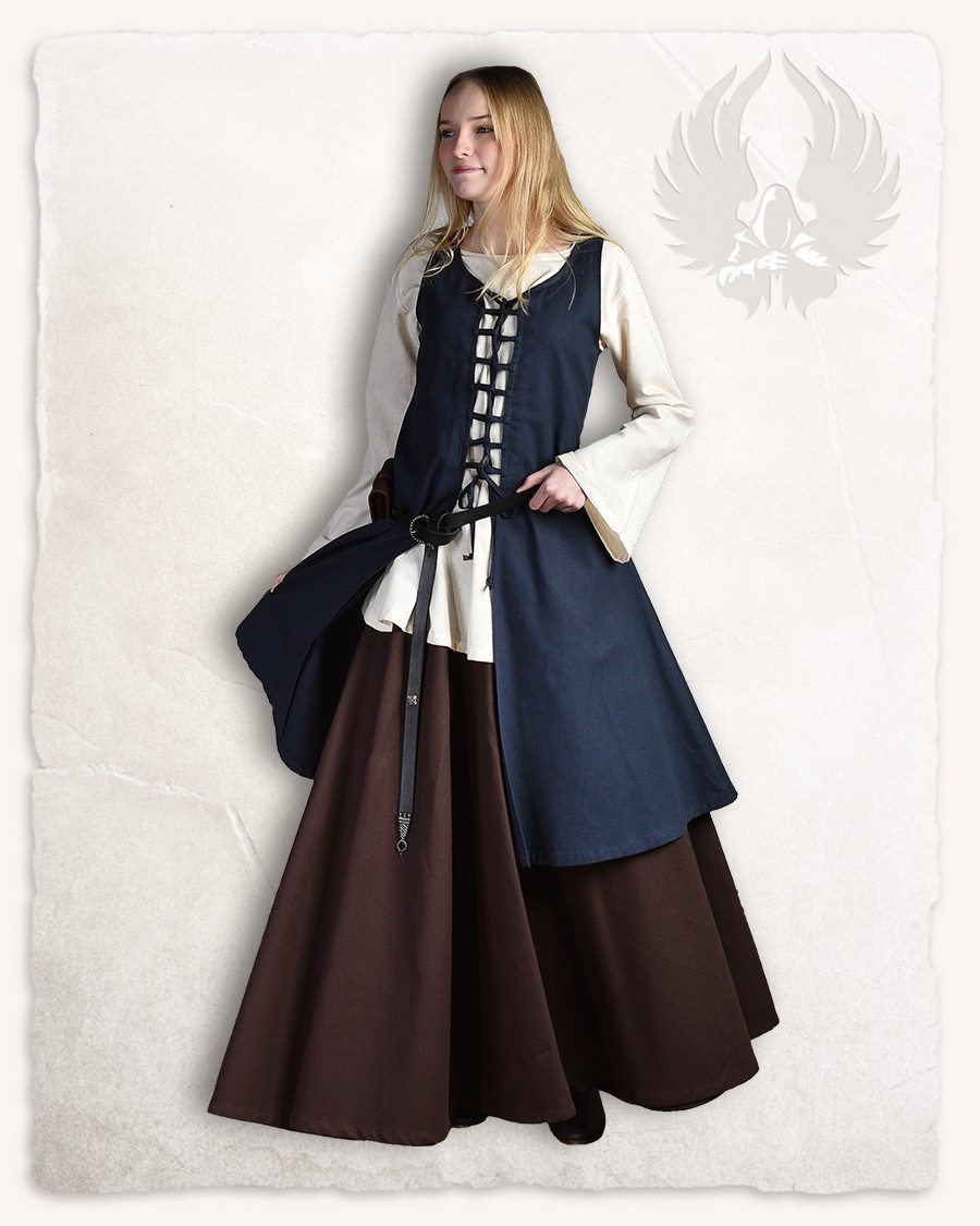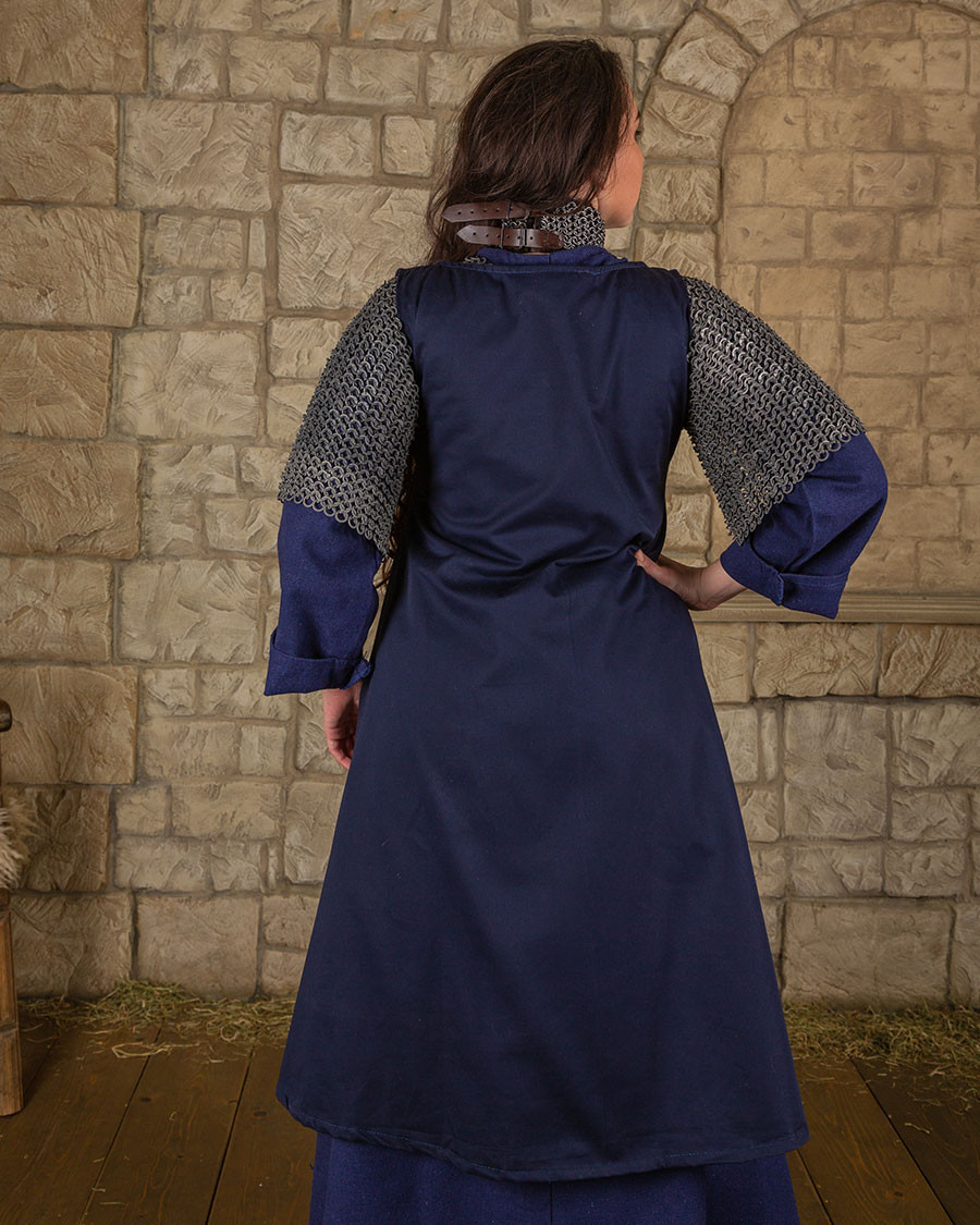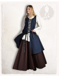 Let yourself be enveloped by the elegance and medieval charm with the Sleeveless Blue Medieval Dress model -Leandra-! Crafted in durable canvas fabric, this captivating dress will transport you to bygone eras while sporting a sophisticated and timeless style. The dress -Leandra- is characterized by its sleeveless design, ideal for showing off your shoulders and highlighting your figure with grace and style. It is usually combined with an underdress and is closed with an interlock on the front, allowing you to adjust it to your perfect size. Depending on the material of the underdress, you will be able to wear this magnificent dress throughout the year.