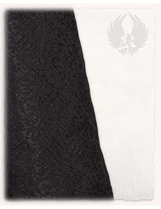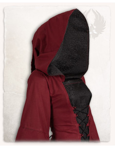 Immerse yourself in medieval charm with the Ophelia hooded dress in burgundy-black! Part of Mytholon's Cronicles series, this dress is made from soft cotton and flowy damask fabric, making it lightweight and comfortable on warmer days. The trumpet sleeves are lined with a vibrant damask fabric that highlights the feminine character of this dress. The wide hood falls fluidly along the back and ends in a long point. The drawstring on the front and back allows an ideal fit and adaptation to the body of the wearer.