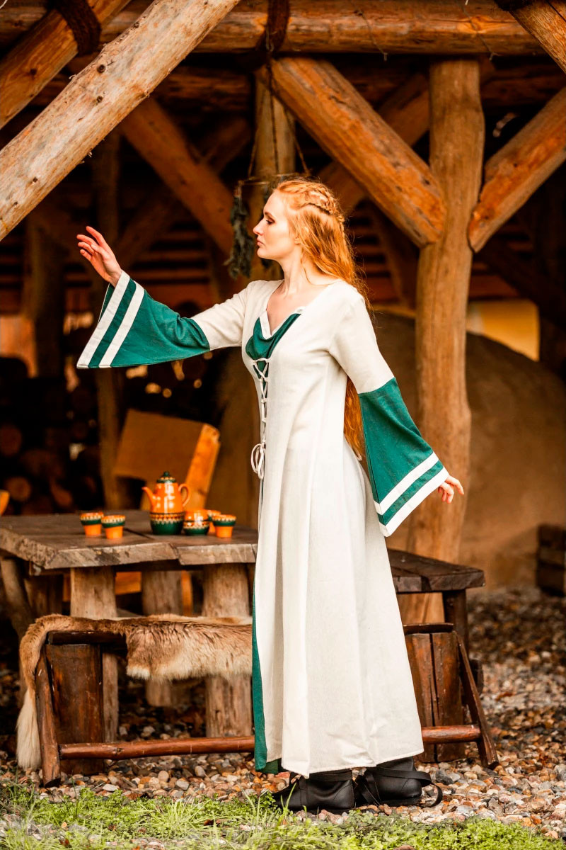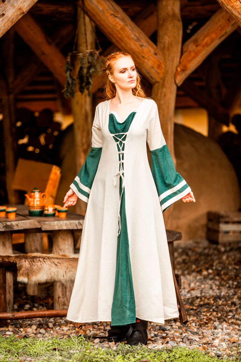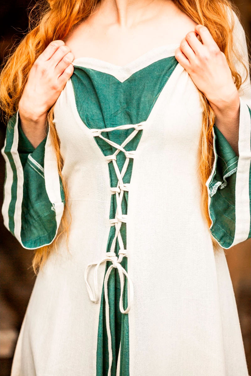 Dorothea model medieval dress, natural-green color