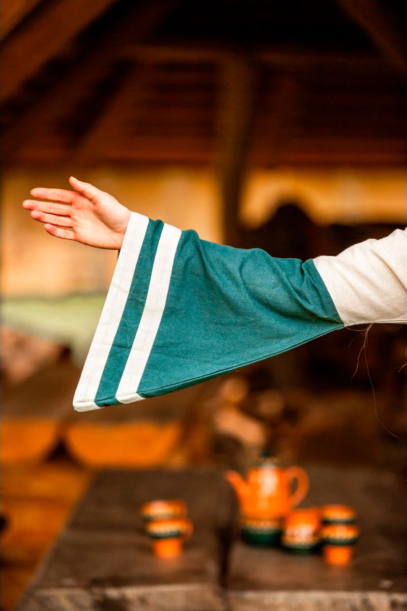 Wrap yourself in medieval authenticity with the Dorothea Model Medieval Dress in a charming natural-green color! This elegant dress from LEONARDO CARBONE is the perfect choice for your medieval events, offering not only style, but also comfort on warm days.