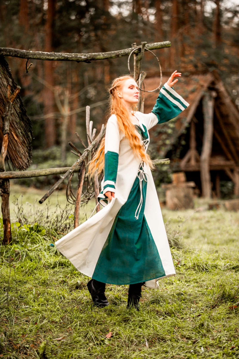 • Charming Natural-Green Color: The natural-green color combination adds a touch of elegance and authenticity to this medieval dress. The color palette reflects the connection with nature and stands out at any themed event.