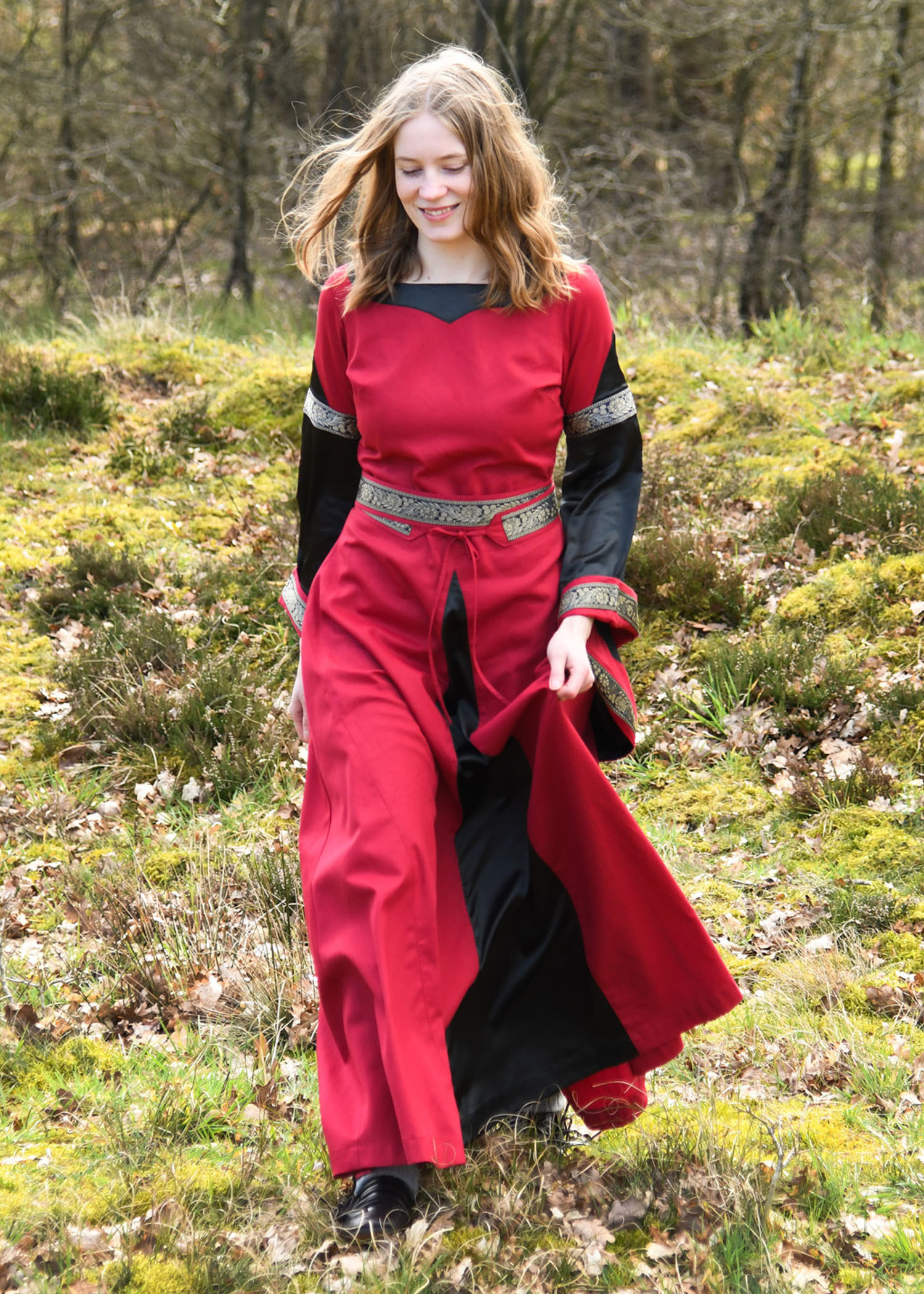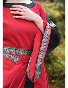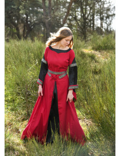 Immerse yourself in medieval elegance and splendor with the Noble Bliaut Medieval Dress model in red and black. This floor-length dress is designed to flatter your figure and transport you to the noble fashion of the 11th to 13th centuries.