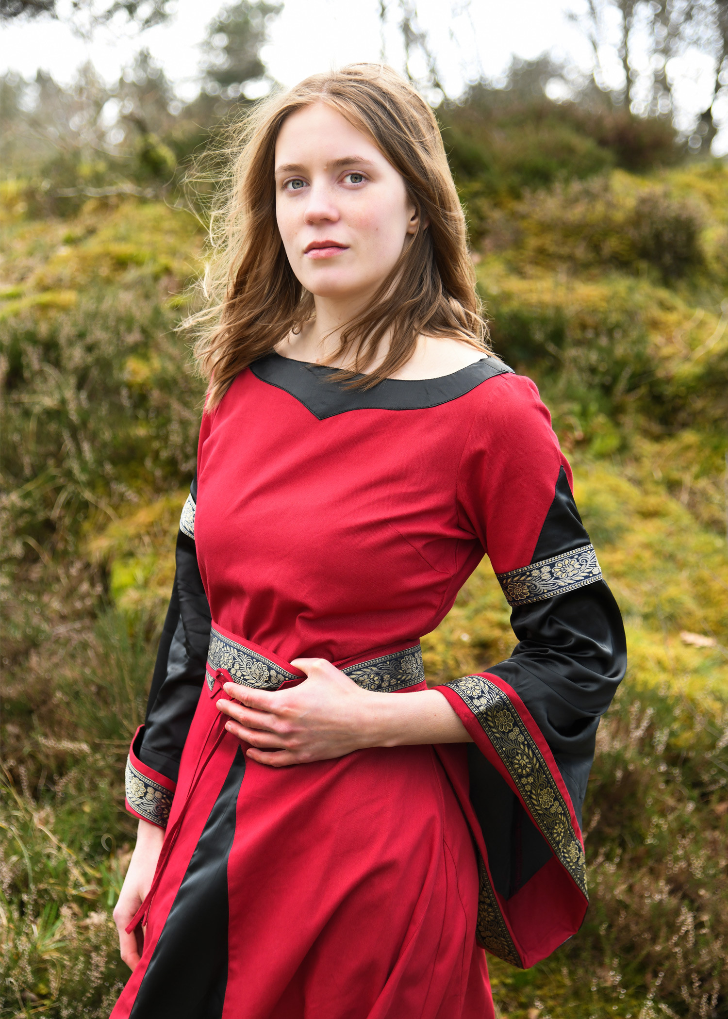 - History and Authenticity: Inspired by medieval Bliaut fashion, this dress evokes the essence of a time of refinement and sophistication. From the cuts to the materials used, every detail reflects the historical authenticity of the garment.