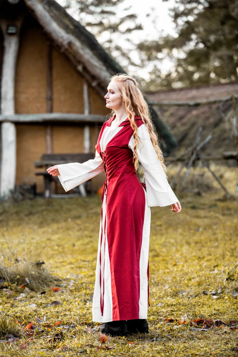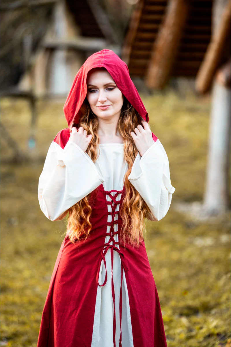 Medieval dress model Genefe, Red-Natural