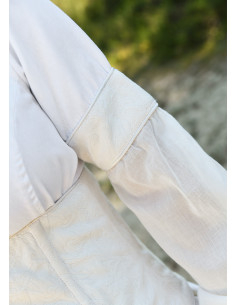 Discover the magic of your special day with the Medieval Wedding Dress Model with Bodice in natural white! This elegant and sophisticated set consists of two separate pieces: a widely flared dress with side adjustments and an included bodice, allowing you to wear it with or without the bodice as you prefer.