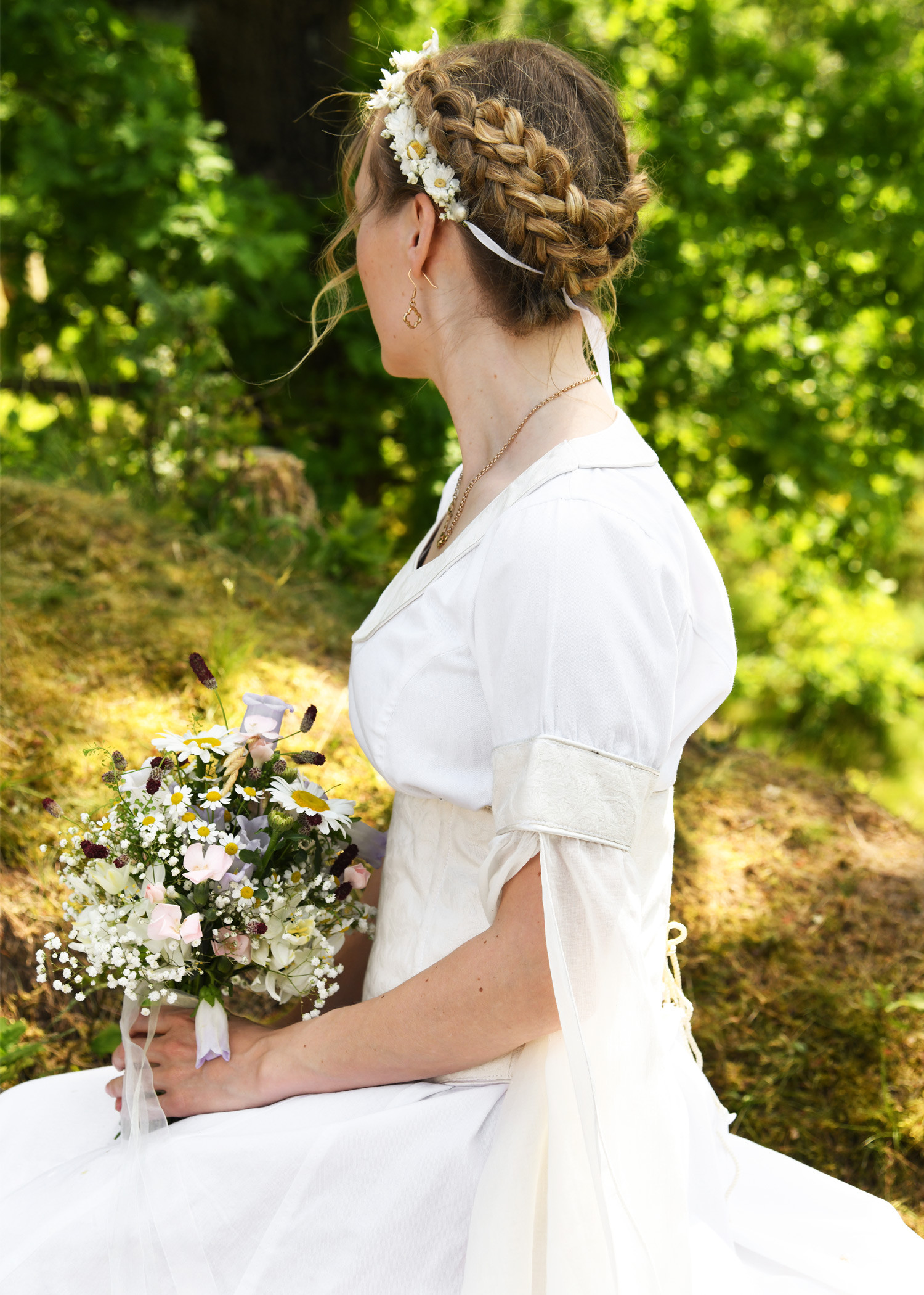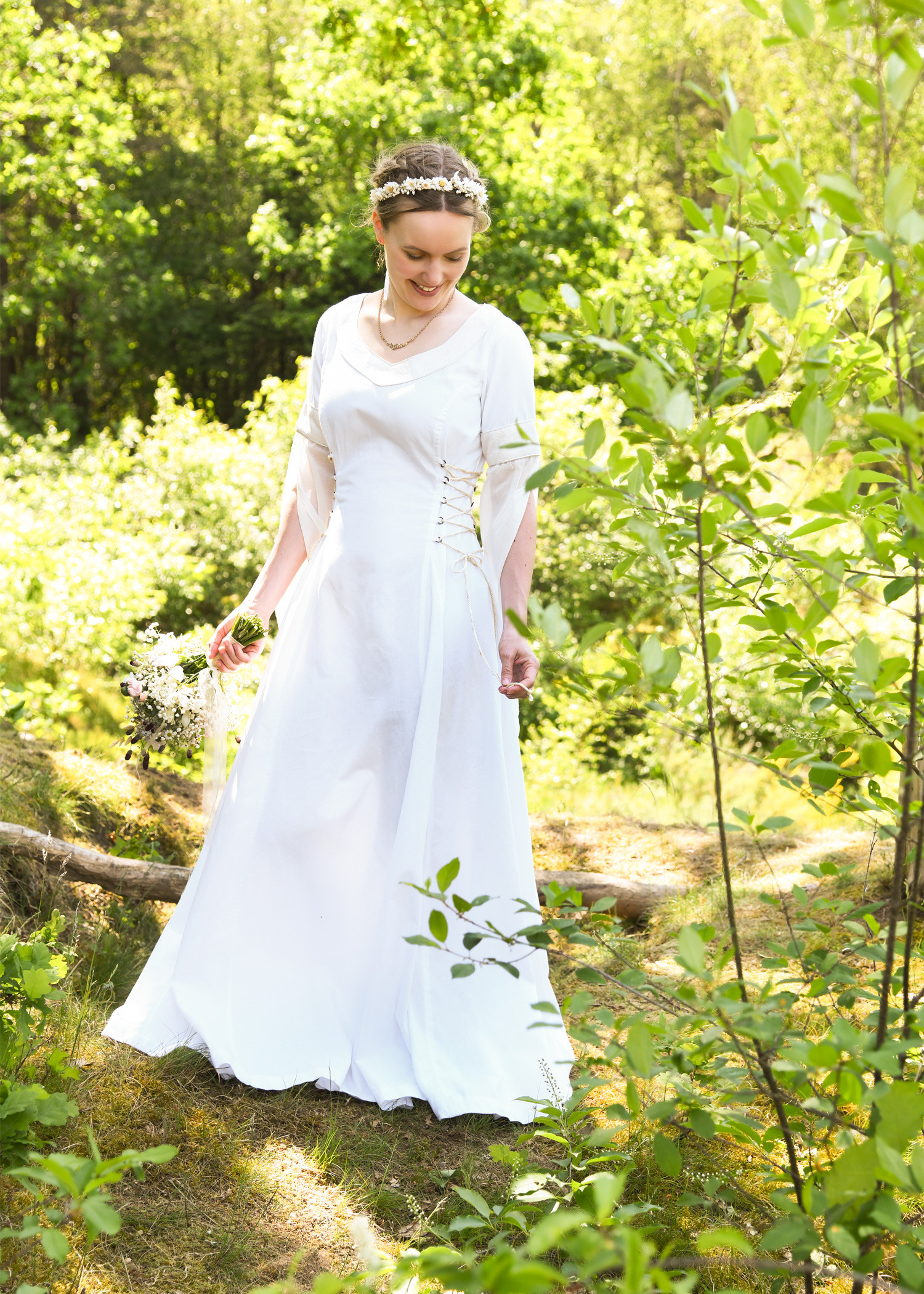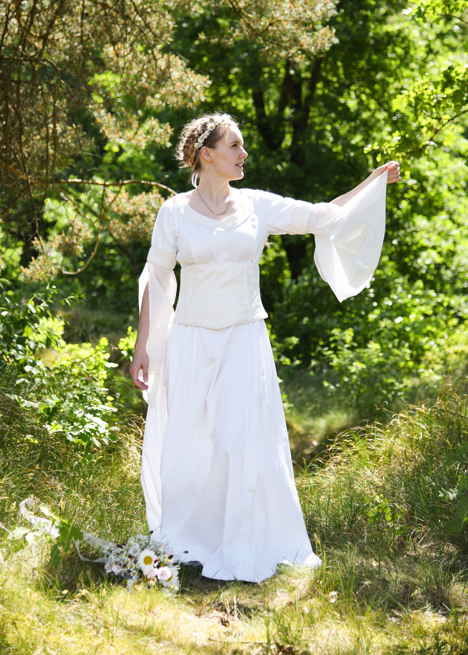 Medieval wedding dress with bodice, natural white