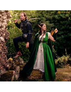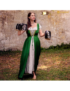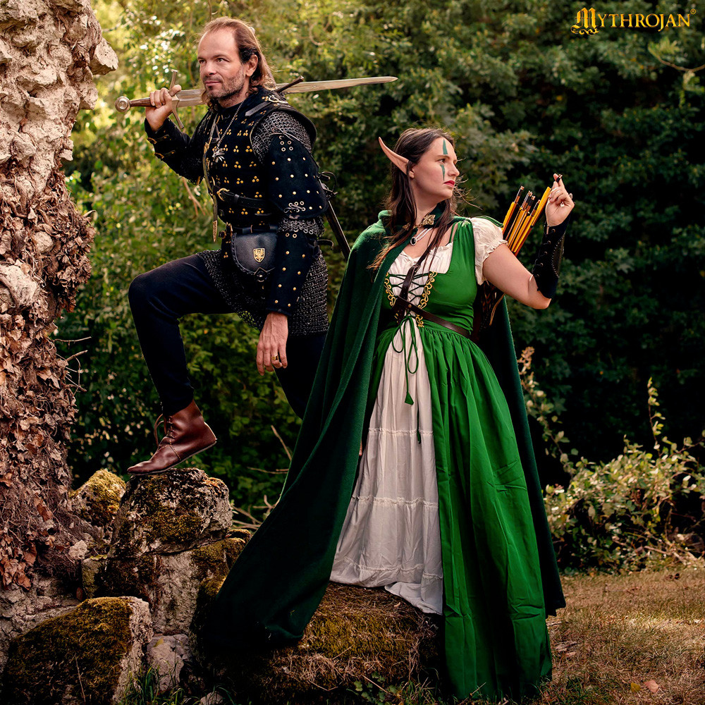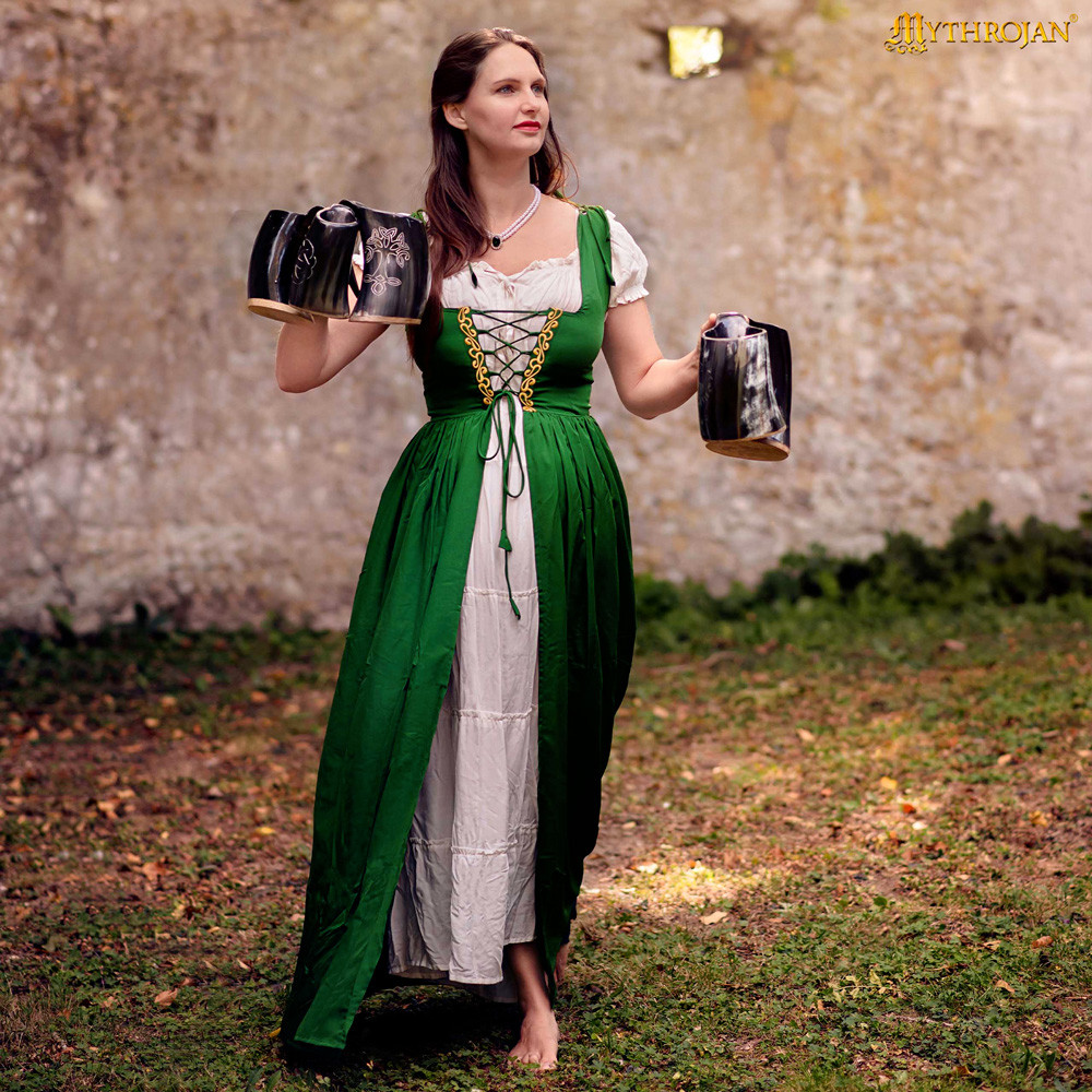 The versatility of this dress is amazing. Perfect for celebrating St. Patrick's Day or bringing characters to life at LARP events, this dress comes with a complete set that includes a chemise and an overdress decorated with beautiful embroidery. With adjustable straps, you will always achieve a personalized fit.