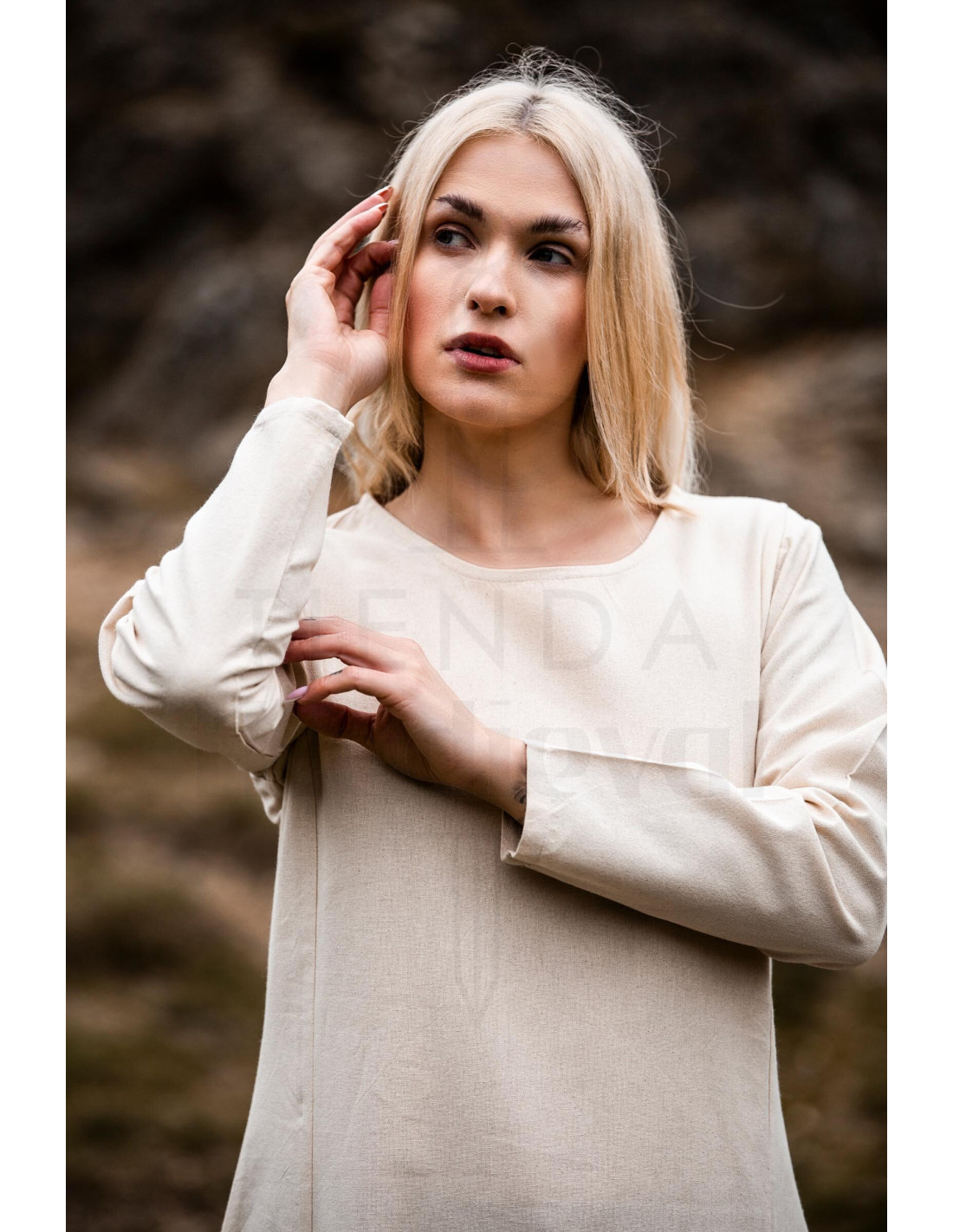 If you are interested in purchasing the Alvilda Medieval Dress with Round Neck in Natural, you will find it a practical option with personality, comfortable for prolonged wear, and easy to care for with machine wash at 30°C.