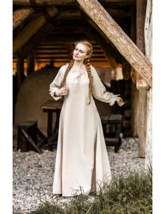 This dress doesn't just dress you; it prepares you to be the protagonist of your story. It can be machine washed without losing its essence or its story. It's the perfect choice for themed gatherings, theatrical events, or any moment when you want to look like an authentic Medieval lady, without sacrificing comfort or your modern world. Whatever you're seeking in that experience, you will find it here. Because the Matilde Dress becomes your armor, your symbol of authority, of belonging to that history you carry on your skin. With it, you position yourself as the owner of your destiny and legacy, ready to conquer and elevate your most important moments.