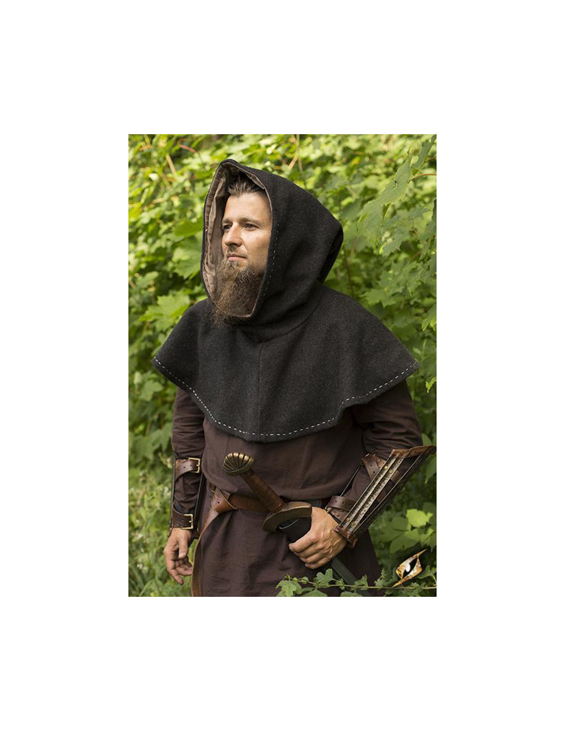 The medieval hood with shoulder covers in gray is the perfect accessory for those looking to protect themselves from the wind and stay warm during cold days. Its unique design includes a cloak that covers the shoulders, providing greater protection for the upper part of the chest.