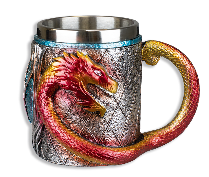 Discover the Medieval Dragons Mug, a true treasure for lovers of medieval times. Designed to transport you to the time of the Viking warriors, this mug will allow you to enjoy your favorite drinks with style and elegance.