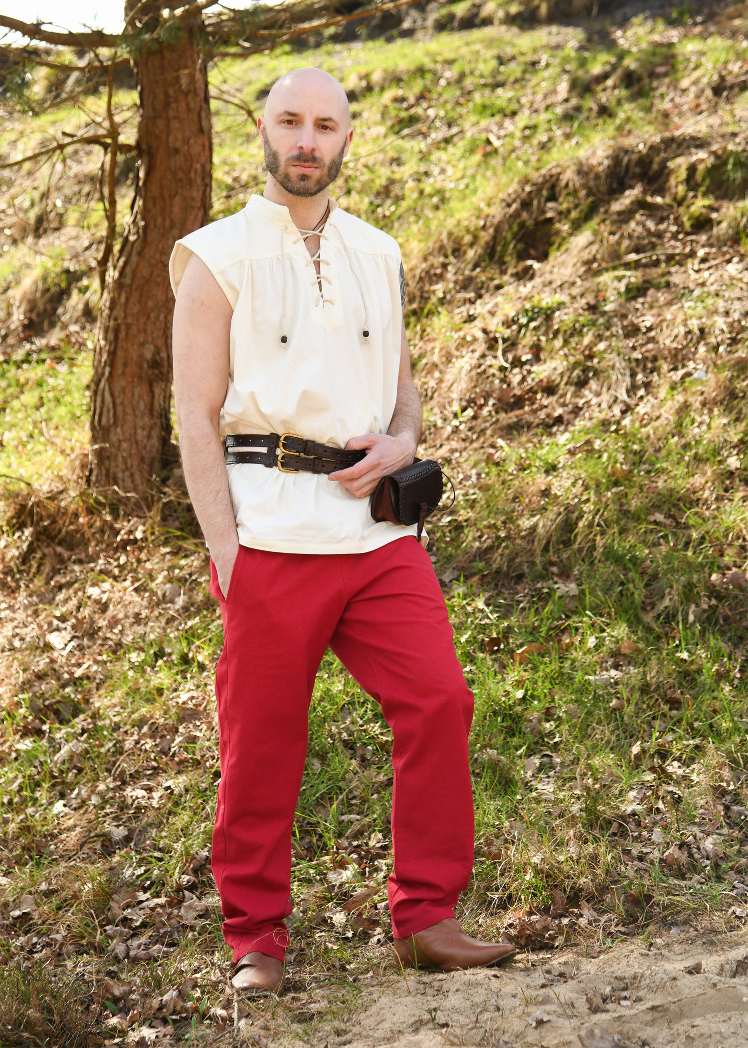 Whether you're participating in a medieval event, enjoying a day of historical reenactment, or simply looking to add a touch of medieval style to your everyday life, the Hagen red basic pants are the perfect choice. Don't wait any longer and add this essential piece to your medieval collection today!