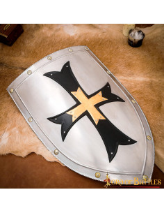 Don't miss your chance to add this amazing shield to your collection. Its authentic and handmade appearance make it a unique and amazing piece. Use it as a decoration in your home, in your cosplay events or in your live role-playing games. Impress your friends and immerse yourself in the world of medieval fantasy with this shield of the Knights of the Crusades in steel!