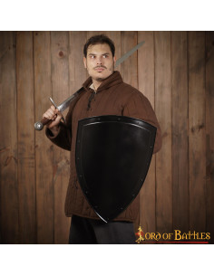 The polished version is delivered with a layer of protective oil against corrosion, which can be easily cleaned. So whether you're upgrading your shield collection, adding a medieval touch to your surroundings, or unleashing your artistic creativity, this plain black shield is the perfect choice. Don't wait any longer to make this canvas of history and imagination yours!