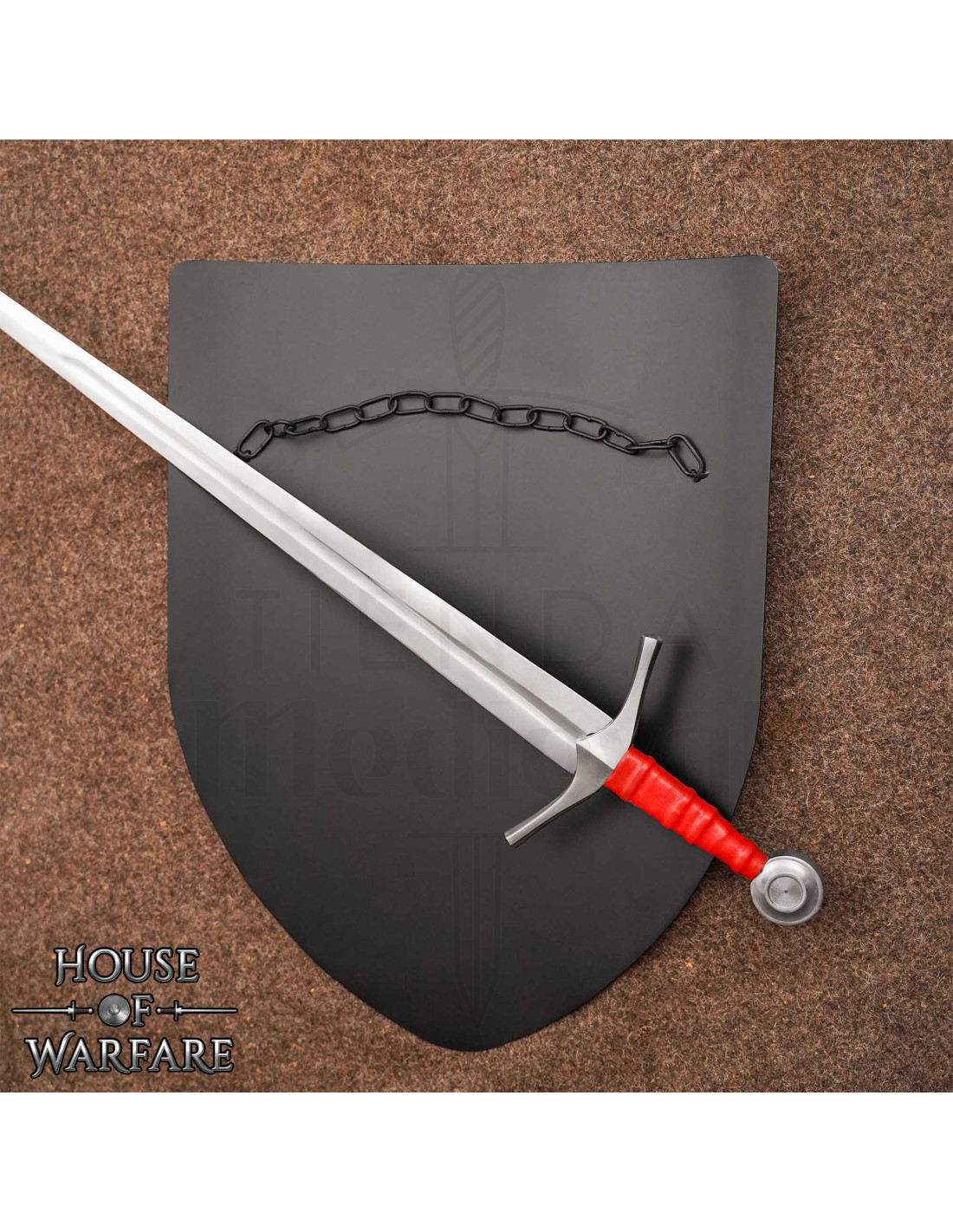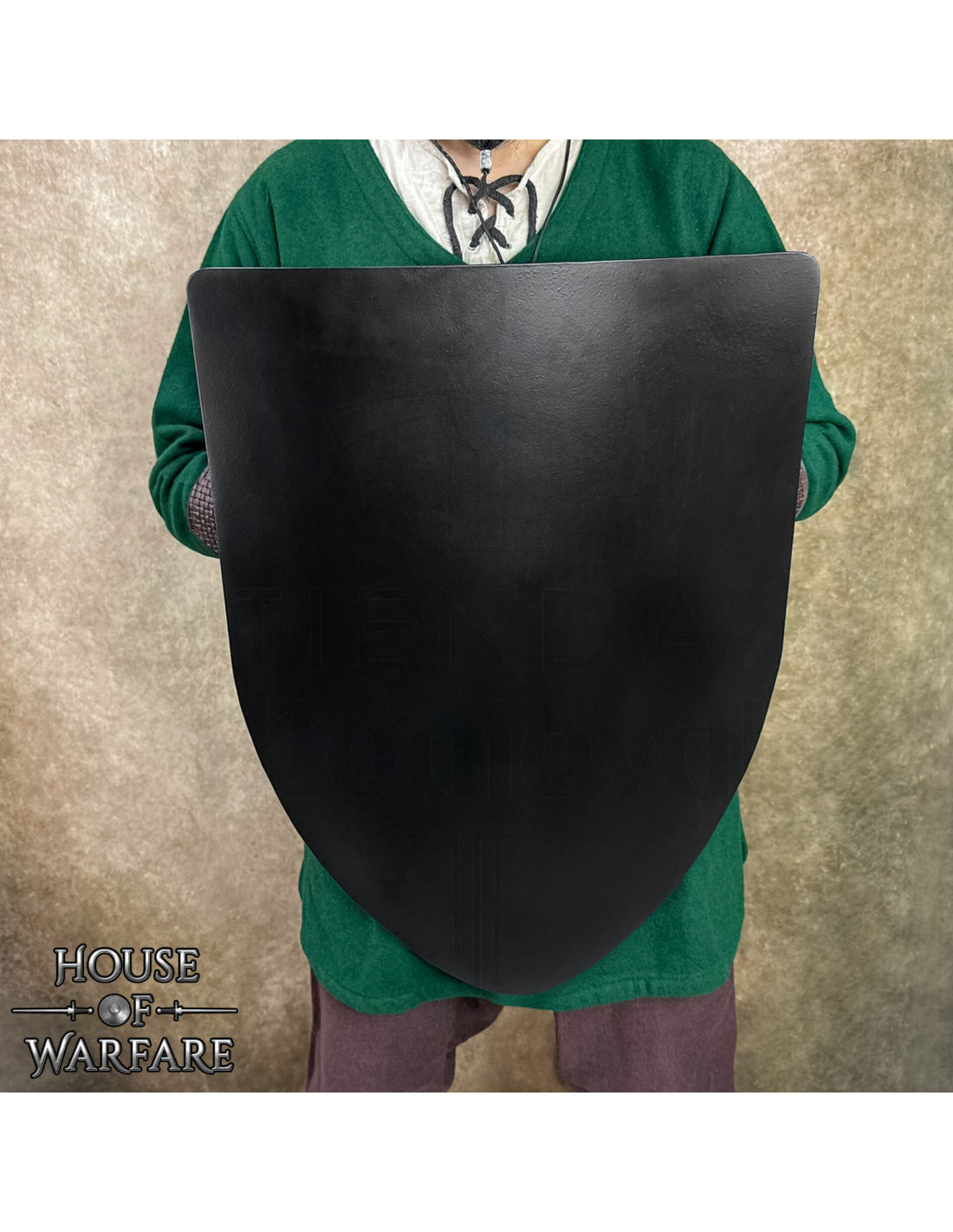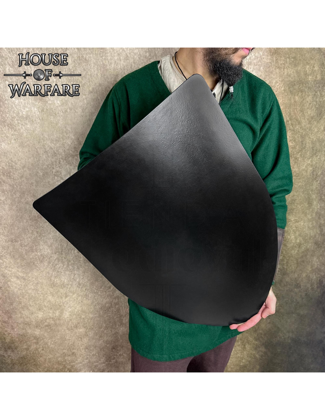 The traditional shape, rounded at the bottom and straight at the top, not only refers to the models used in the High Middle Ages but is also designed to effectively cover the torso, helping to deflect impacts during training and performances. The result is a balance between visual authenticity and practical functionality.