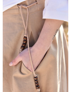 Our medieval skirt is made of a soft and resistant 100% cotton, which makes it comfortable to wear throughout the day. Its waistband features a lined cord, the ends of which are delicately embellished with decorative wooden beads, adding a touch of authentic style to your medieval attire.