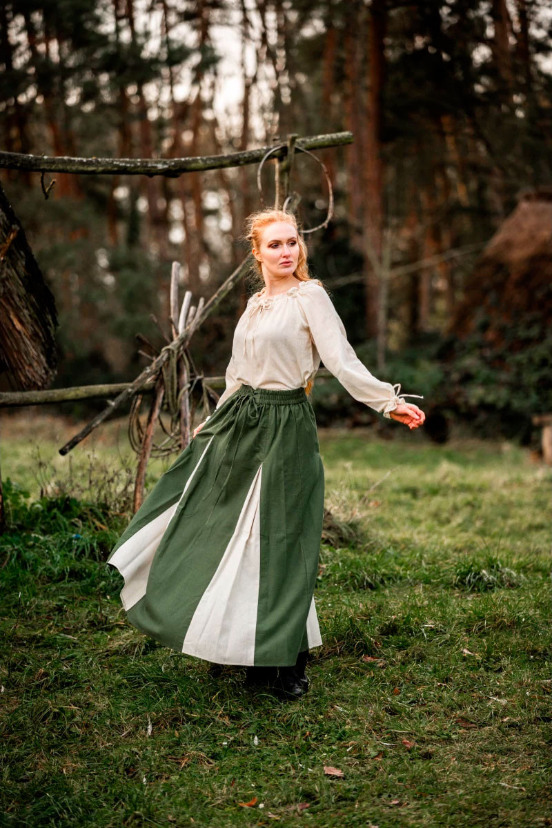Medieval skirt model Isabella, natural-green