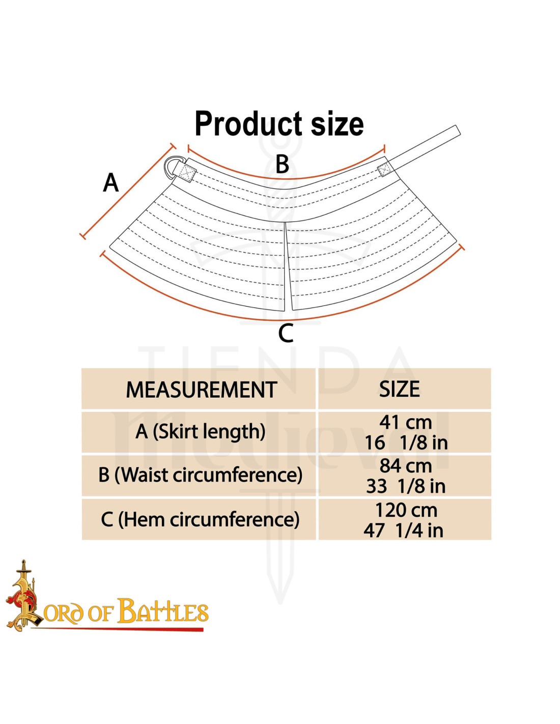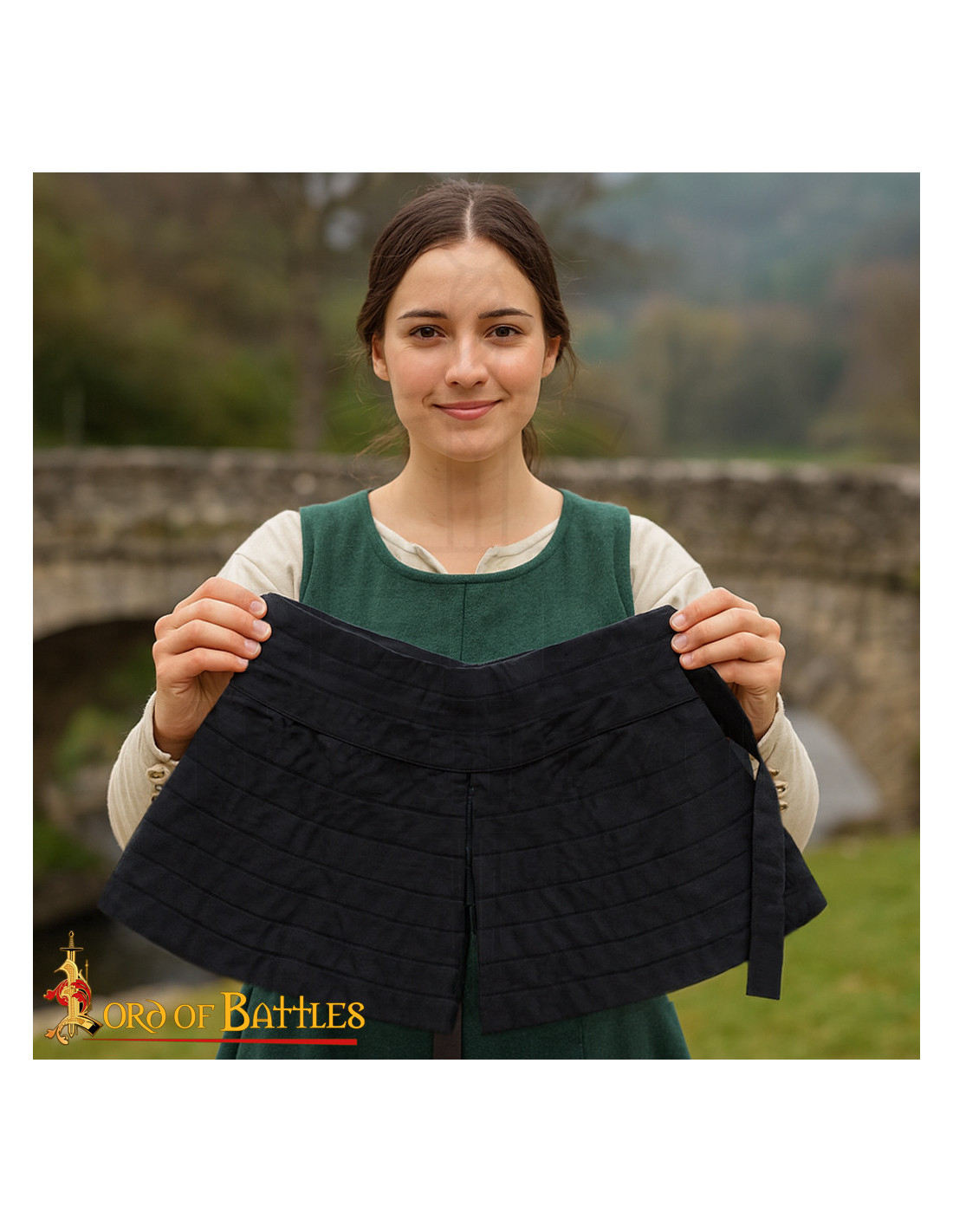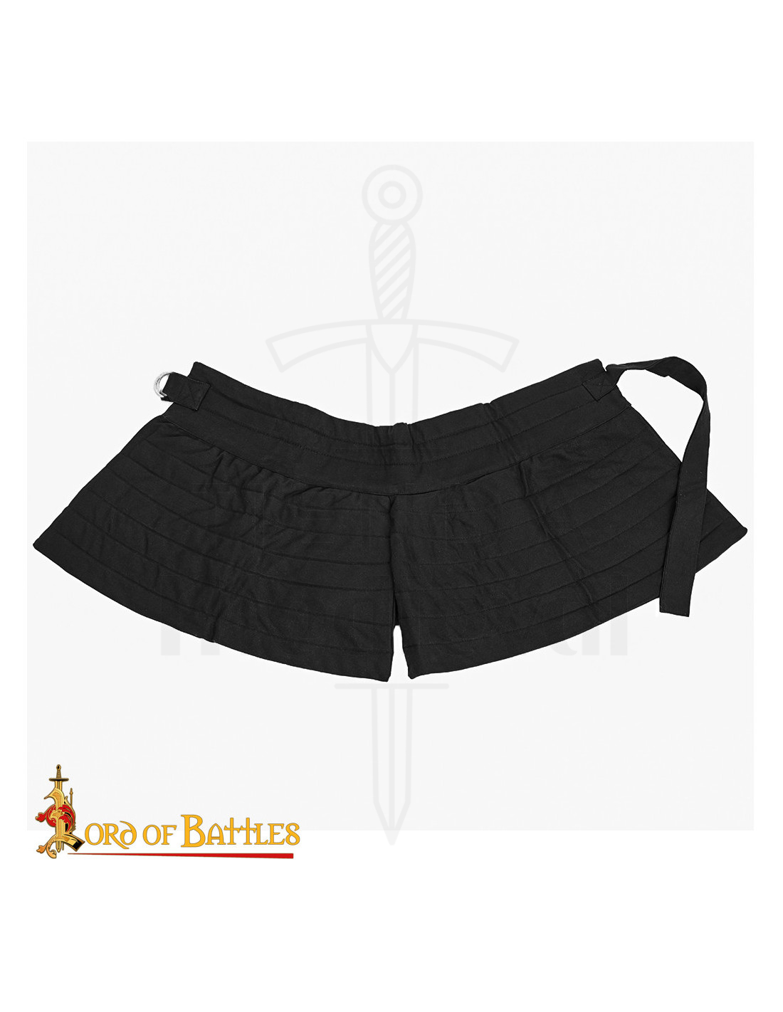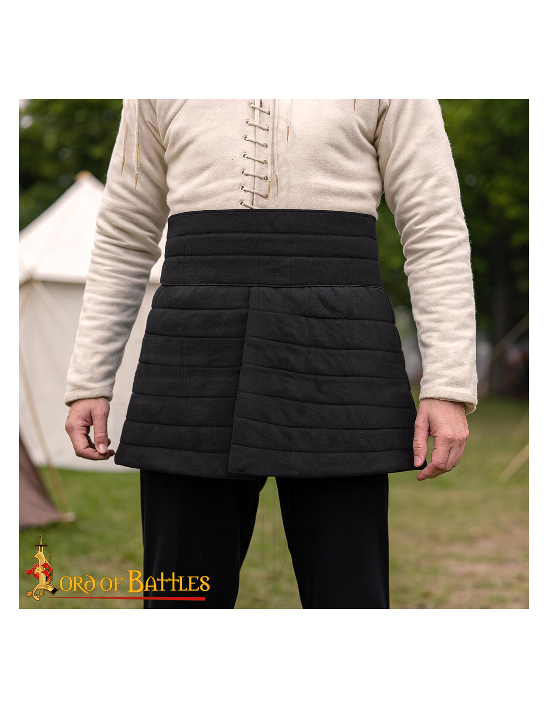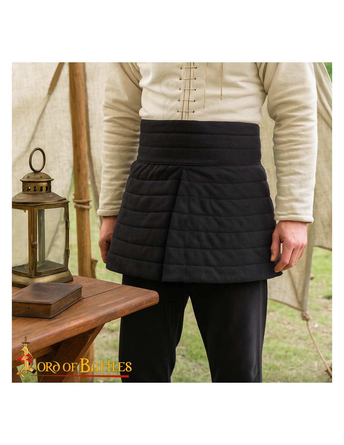By choosing to buy the Black Cotton Padded Medieval Skirt, you get a piece designed for long training sessions and intense recreations, providing protection where you need it most, and feeling comfortable for hours. The exterior is made of durable cotton canvas, and the padding with horizontal stitching maintains structure and prevents the filling from shifting, ensuring constant protection without uncomfortable bulk while you run, sit, or mount.