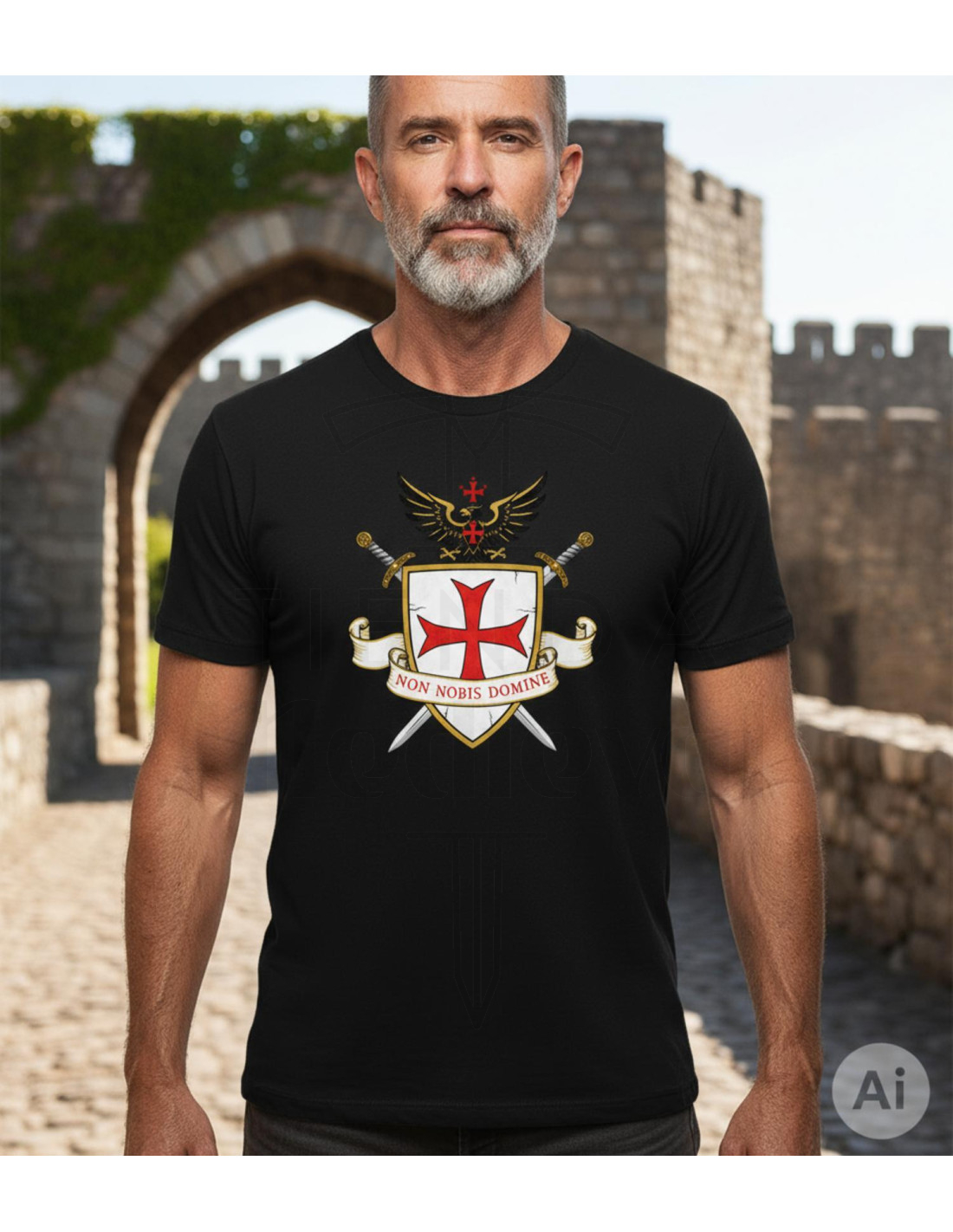 Ready to buy the Black Templar T-Shirt for Men, Non Nobis Domine? Choose your size and color, and receive a comfortable garment with an integrated design and finishes designed to last.
