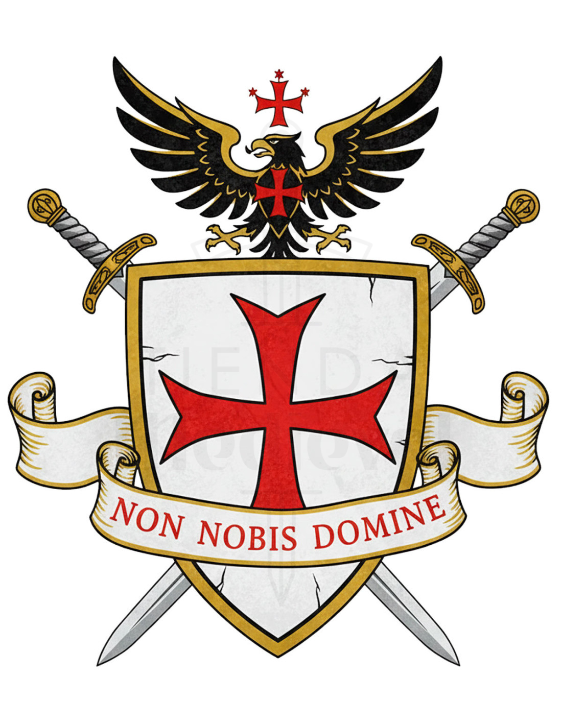 The phrase Non Nobis Domine refers to Templar tradition and carries a symbolic meaning that connects with those who value historical motifs and significance in their clothing, without being ostentatious.