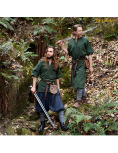 The included brown leather belt not only fits the tunic perfectly but also adds a balanced visual element, complementing the dark green of the fabric. You can easily combine it with cloaks, armor, or any accessory that enhances your historical character, whether a Viking warrior, an Anglo-Saxon, or a medieval figure.