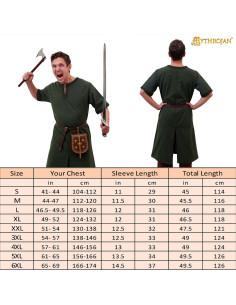 Carry a piece of history with this medieval tunic inspired by the robust style of the Vikings, designed with your comfort and authenticity in mind. Its high-quality cotton fabric ensures a comfortable and breathable garment, perfect for long events or outdoor activities. Designed with a long cut and short sleeves, it offers you freedom of movement for any challenge, whether at a historical reenactment joust, a medieval fair, or enjoying a LARP event.