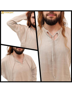 Imagine dressing in a garment that transports you directly to the medieval era, where elegance and comfort coexisted hand in hand. This short medieval tunic is much more than just a simple shirt; it is a tribute to history and tradition that will make you stand out at any event.