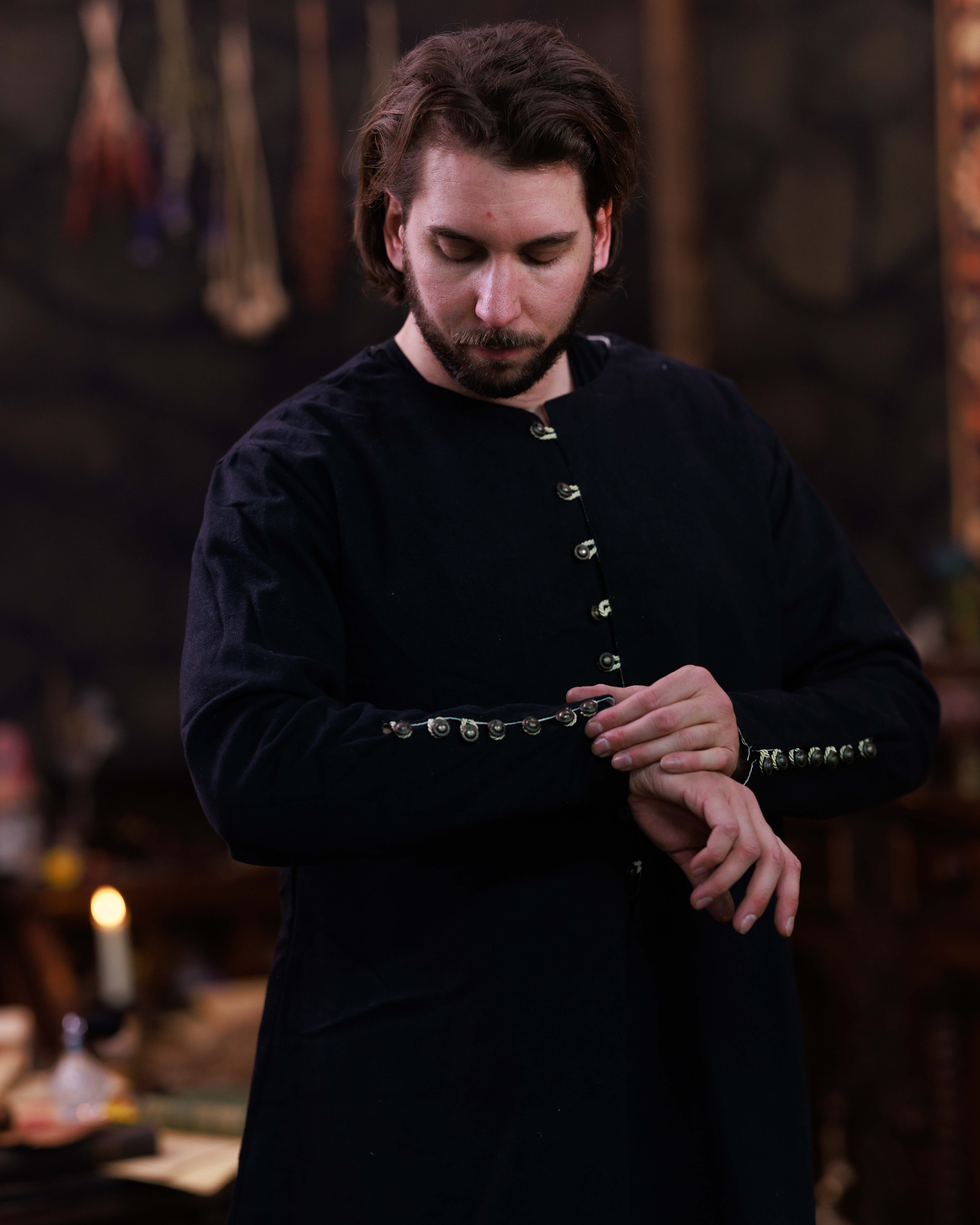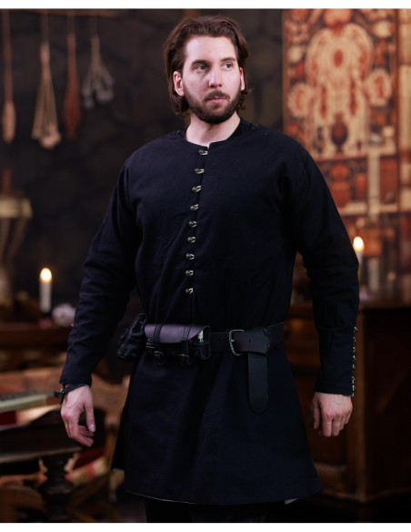 If you're interested in purchasing the Medieval Cotton Tunic in black, Rafael model, you will find in this piece a well-crafted, practical, and striking proposal, designed for those who value noble materials and details that speak for themselves.