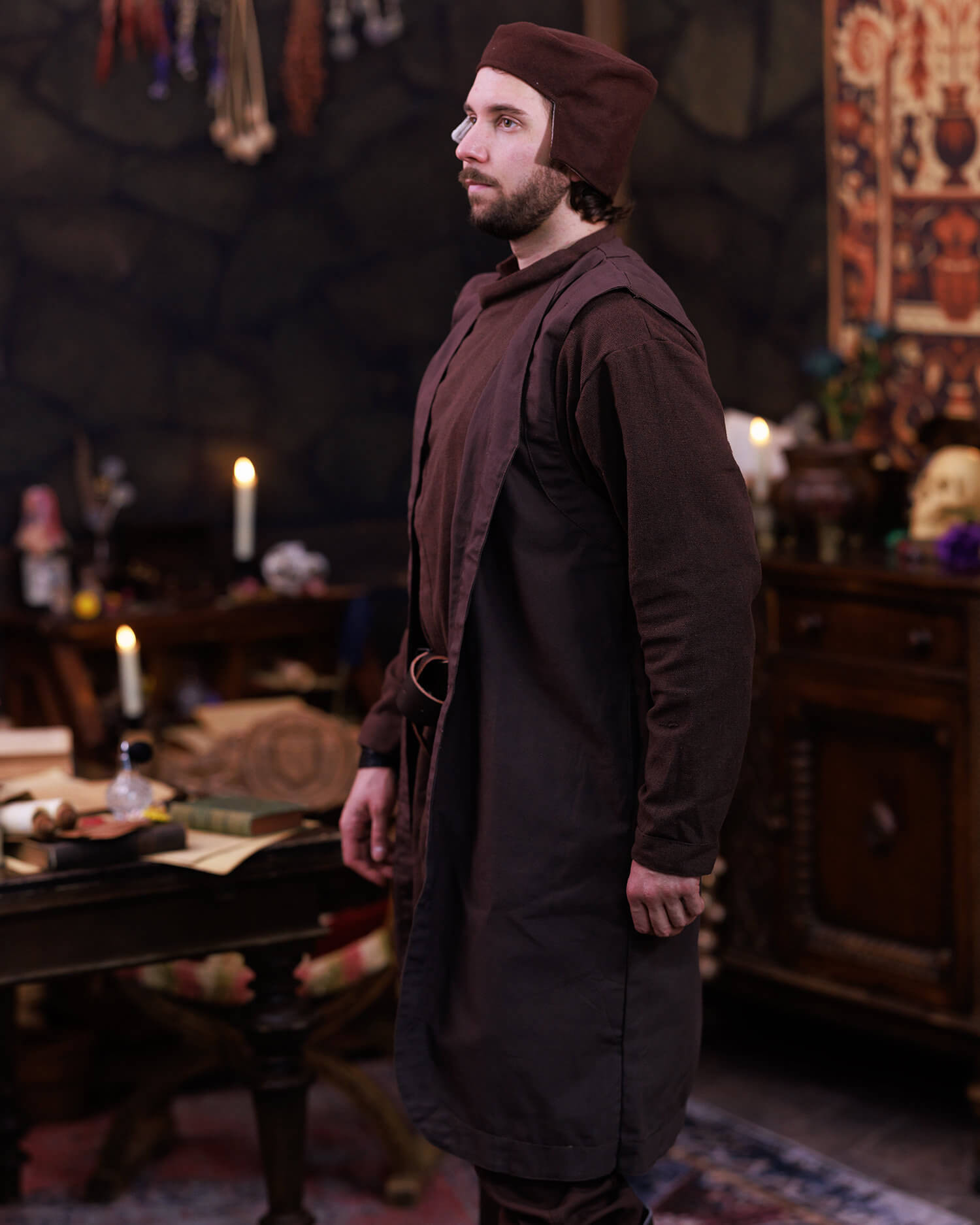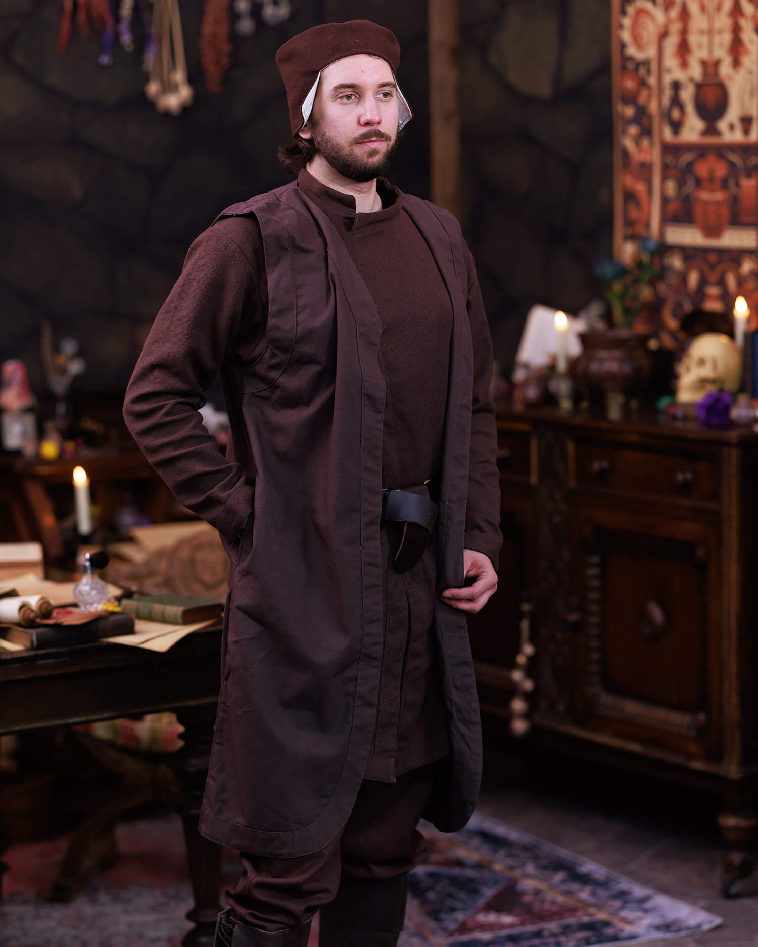 This model naturally fits characters like wizards, clerics, or scholars, offering an air of reserved and orderly expertise, also suitable for nobles or well-off citizens who prefer a sober aesthetic. The Sorcery collection provides a coherent line for dressing tales and games with authenticity.