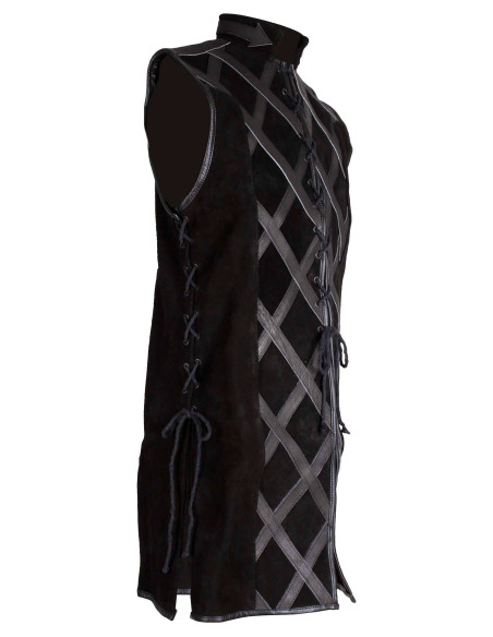 If you're looking to purchase the Cahir Model Medieval Suede Vest in Black, you'll find a piece that combines customizable fit, commanding presence, and materials designed to last. Its refined design, with no visible pockets, enhances the line and facilitates mobility.