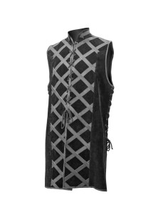 The front and side lace-up closure allows for instant fit adjustment, ensuring freedom of movement without compromising a secure fit. Being sleeveless makes it easy to layer with cloaks or armored garments, keeping the arms free for any task or combat, and the rigid Mao collar maintains a firm line that reinforces posture and an aura of authority.