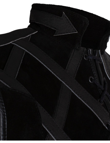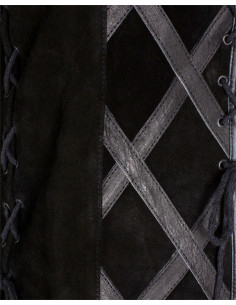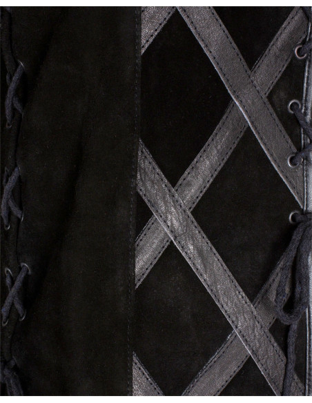 This vest transforms classic style into an adventure-ready piece: the suede provides a soft yet durable feel that hugs the body with character, while shimmering leather straps crisscrossing the front add structure and a visual effect that enhances the silhouette. The result is a garment that looks polished while being prepared for continuous use.