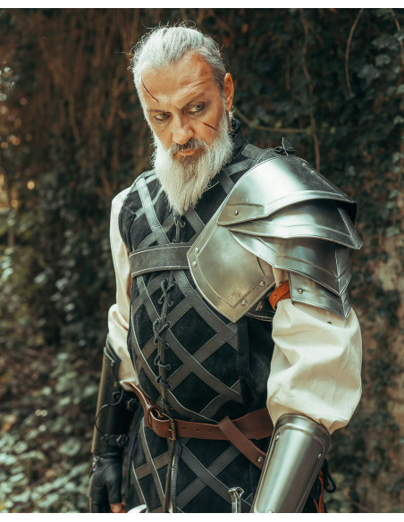The finishing touch of the shiny trim along the lower edge and the discreet details on the collar create a coherent and elegant finish, without unnecessary embellishments. This calculated simplicity transforms the model into a versatile choice: equally suitable for mercenary and hunter roles, as well as for those seeking a distinctive look at themed events or reenactments.