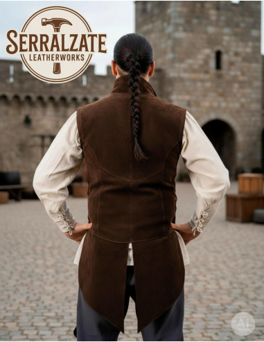 Adjustable Medieval Vest Arturo in Dark Brown Suede