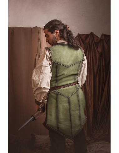 Long medieval green leather jerkin for men
