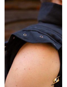 Whether worn alone or as a filler under your armor, this gambeson will keep you comfortable and protected on the battlefield. Its customizable fit is one of its greatest strengths. It is worn like a jacket and closes at the front with five leather straps and brass buckles. This allows you to adjust the tension to your liking, giving you a perfect and secure fit.