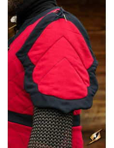 The Dastan Long Padded Gambeson in red-black from Epic Armoury is the perfect accessory for any warrior inspired by Persian soldiers. This prawn is designed with the utmost attention to detail and comes with three chest straps and buckles for a secure and comfortable fit.
