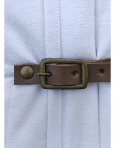This shrimp is not only practical, but also aesthetically pleasing. Its white color gives it a clean and elegant appearance that adapts to any medieval outfit. In addition, the adjustable buckles allow for a safe and secure closure, preventing the gambeson from moving or slipping during your activities.
