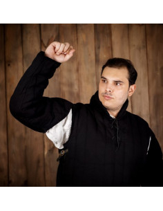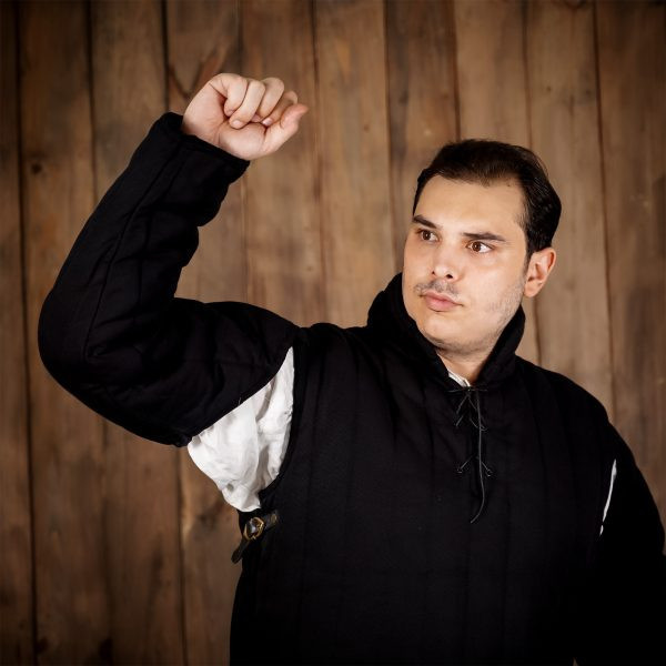 Its side buckle allows a perfect fit for almost all sizes, ensuring comfort and mobility at all times. This gambeson can not only be worn on its own as light armor for light infantry archers, gunners, or other soldiers who rely primarily on mobility, but also under plate armor or chain mail, providing an extra layer of protection.